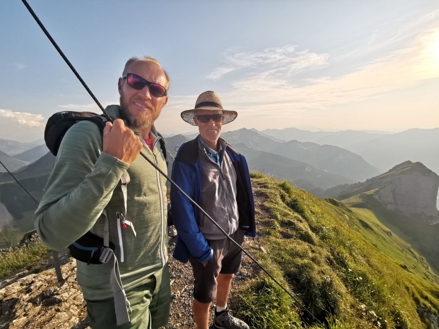 Gemeinsam mit Skisprung-Legende Toni Innauer, der in der Gegend zu Hause ist, erklomm Hermann die Kanisfluh. Auf dem Gipfel konnte er sich den besten Überblick des zu erkundenden Gebiets machen und die fantastische Aussicht vom Bodensee bis zum Piz Buin genießen. Der erste Ausflug ins Ländle jedenfalls weckte seine Neugier und machte Lust darauf, sich eingehender mit Land und Leuten zu beschäftigen.